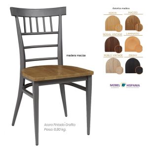 Silla metalica grafito asiento madera macizo