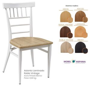 Silla metalica blanca asiento laminado madera