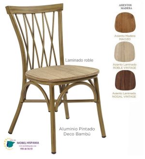 Silla aluminio deco bambu asiento macizo madera