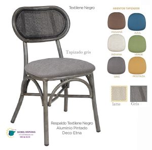 Silla con Respaldo Textilene negro Aluminio Pintado gris etna con asiento tapizado.