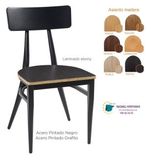 Silla metalica negra asiento madera laminado