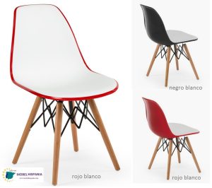 Silla con patas de madera asiento polipropileno tapizado cafe