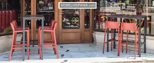 URBAN: mesa alta con un sencillo y práctico mecanismo de unión mediante codos de poliamida.