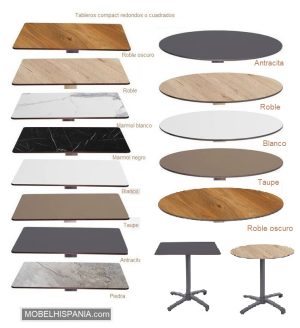 Mesa redonda con tapa abatible para uso exterior e interior.