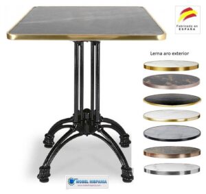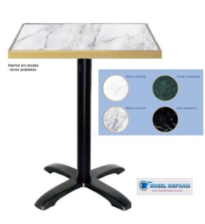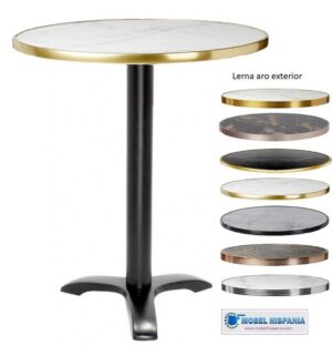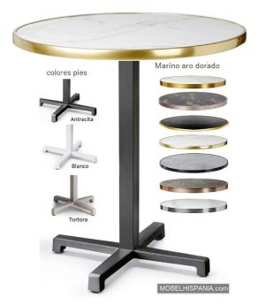 AG.9928 Mesa tapa marino aro dorado pie central cafeterias