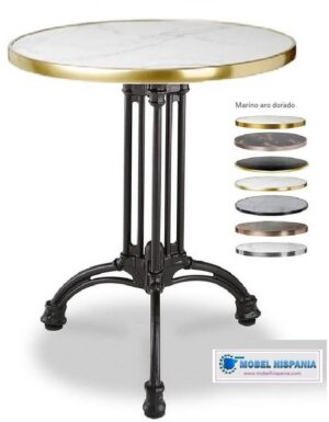AG.8829 Mesa parisina bistro sobre marino imita marmol aro dorado