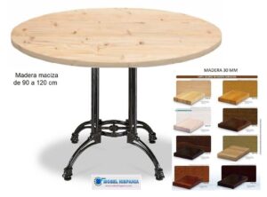 AG.2936 Mesa bistro tablero madera maciza pie forja