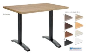 AG.9929 Mesa rectangular melamina pie doble metalico restaurantes