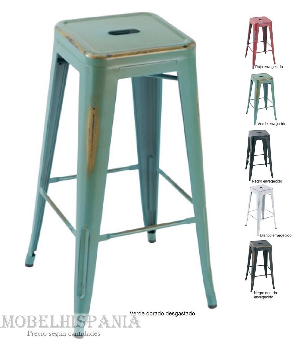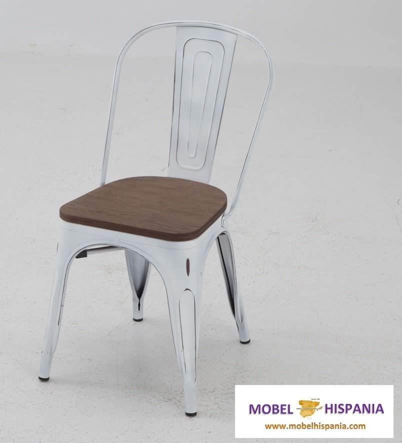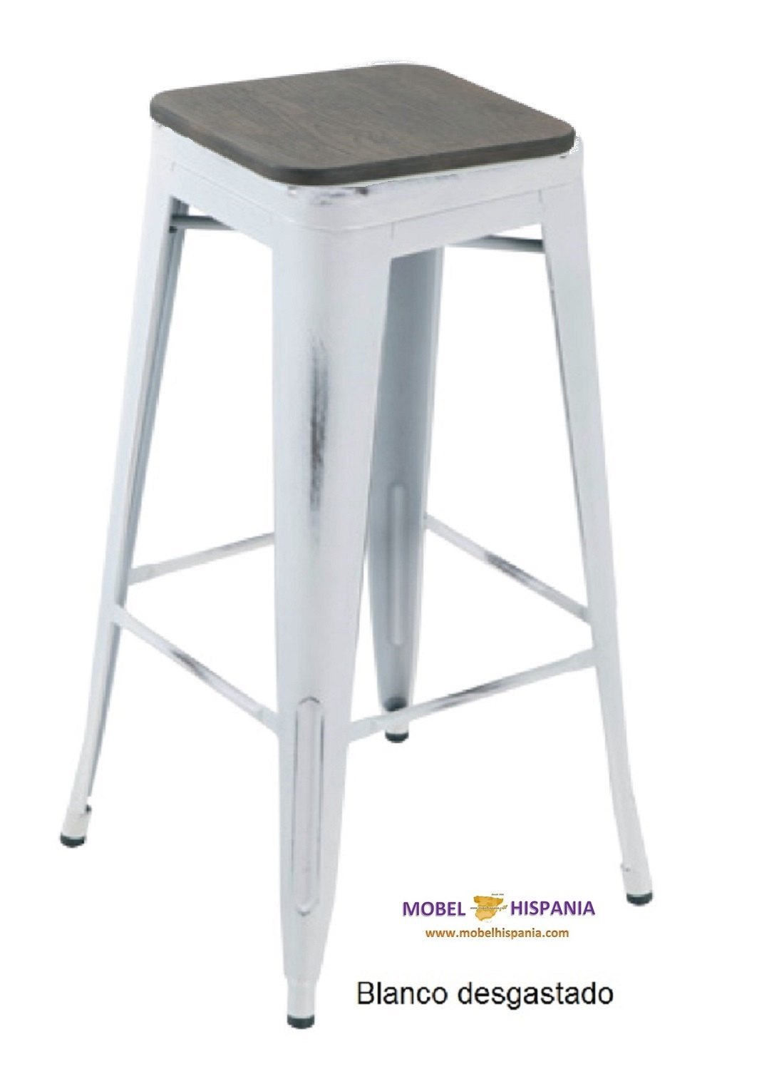 AG.5048BB tabureta vintage metalico blanco asiento bamboo