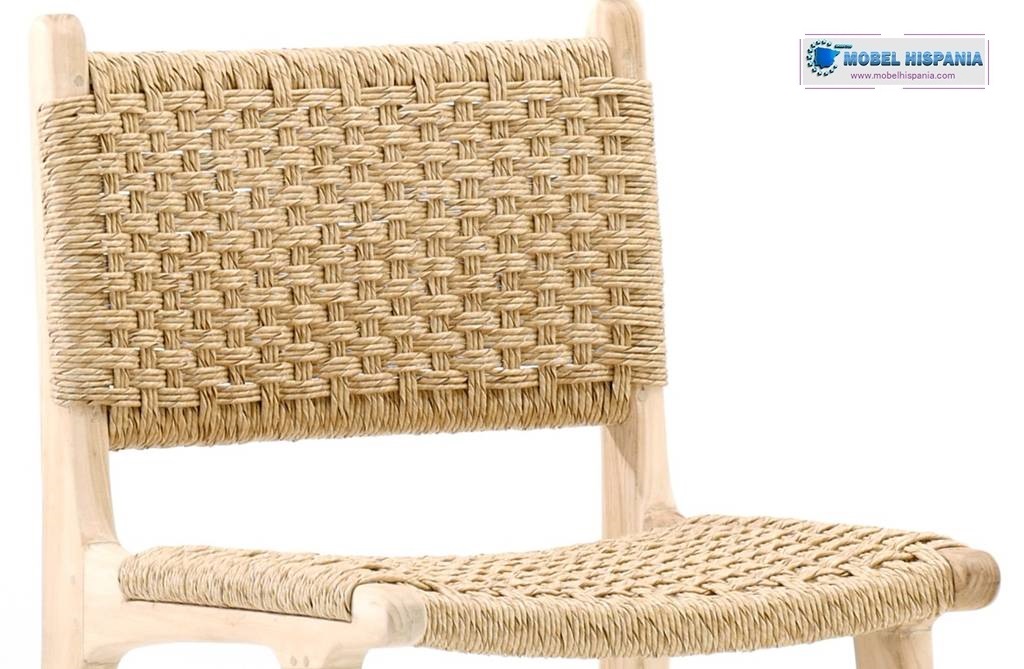 Taburetes de madera de teka con asiento trenzado en cuerda natural