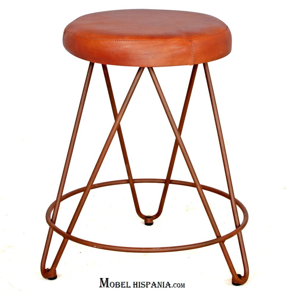 CABARET Oxido Taburete bajo metal tapizado en piel
