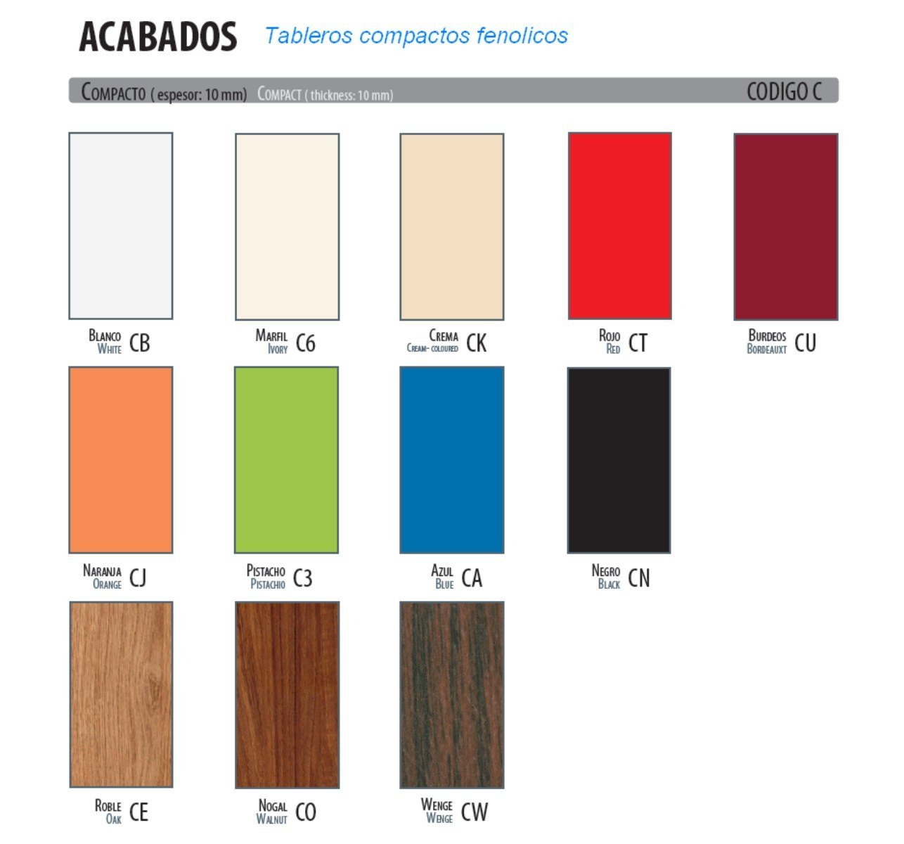 Compacto: Se trata de una lámina de 10 mm de espesor compuestas por láminas defibra termoendurecidas