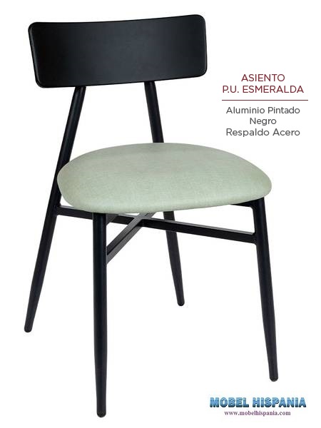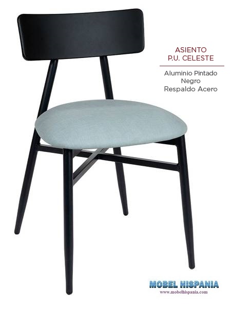 Sillas de aluminio en líneas sencillas con asiento tapizado y respaldo metal aluminio negro