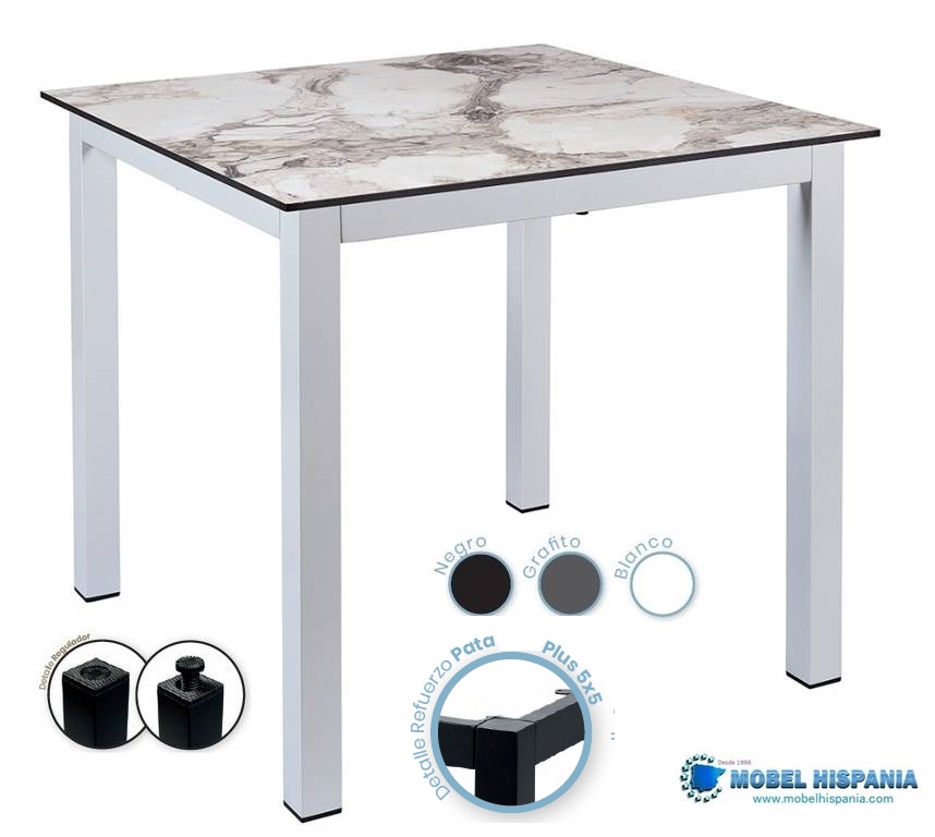 mesas de aluminio reforzadas con tablero compacto