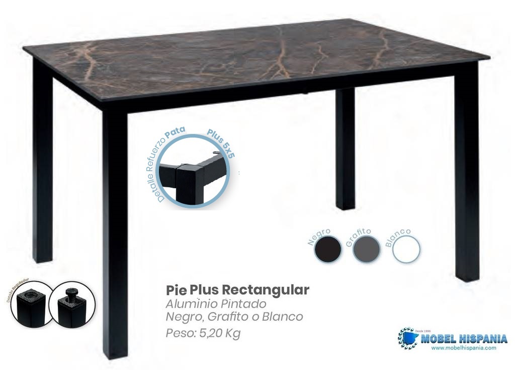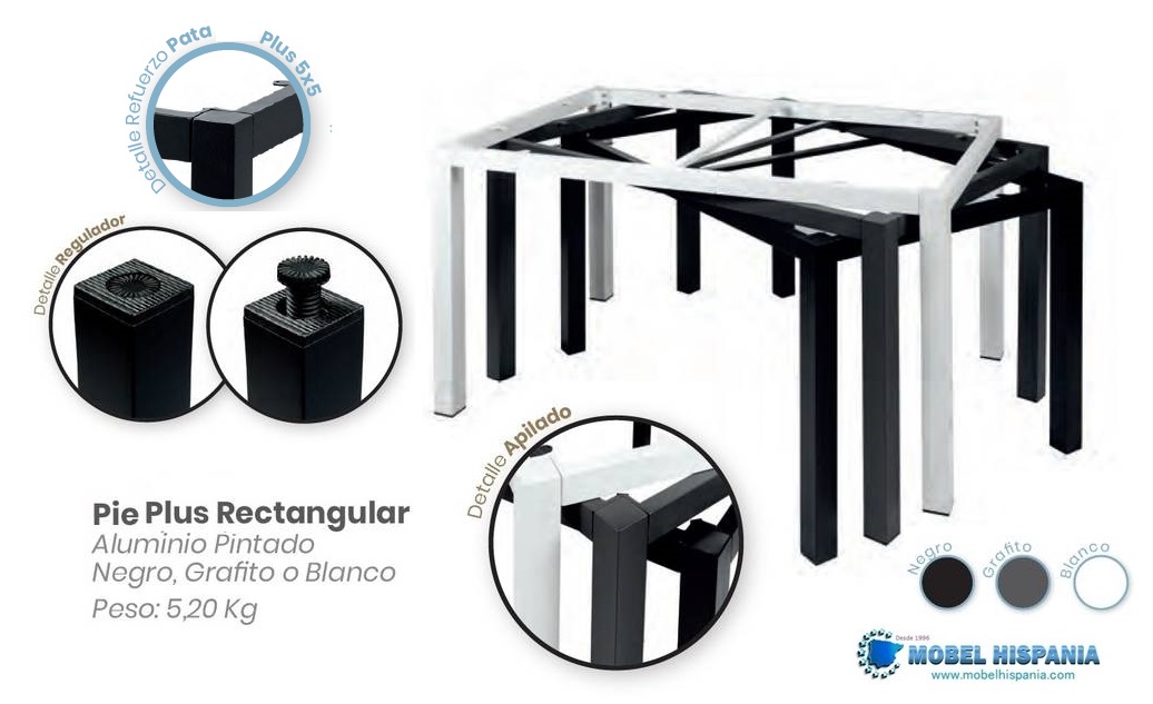 Patas de 50×50 mm reforzadas en aluminio con tacos niveladores