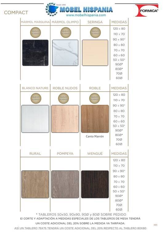 70×70 cm ( precio indicado en compacto fenolico )