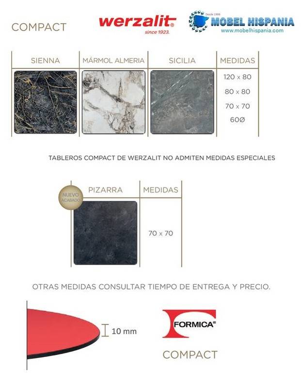 Tableros werzalit , melamina y compacto fenolico: varios modelos y colores