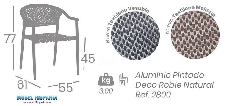 KM.2800 Sillon para terrazas en aluminio roble y textilene en 3 colores