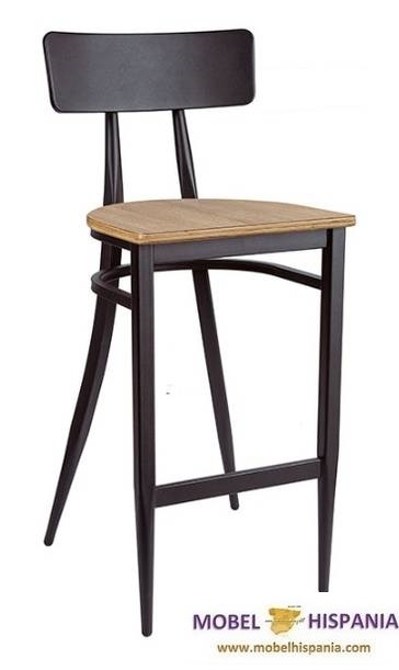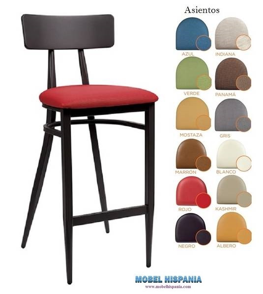 Taburete bar con respaldo metalico y asiento tapizado o madera