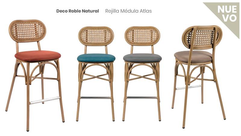 Taburetes con asiento y respaldo en rejilla sintetica natural