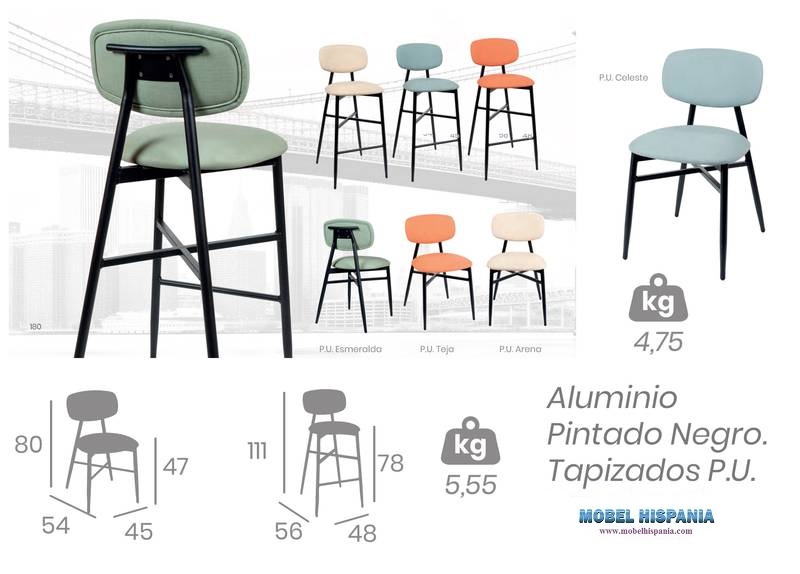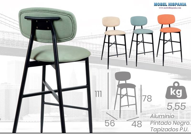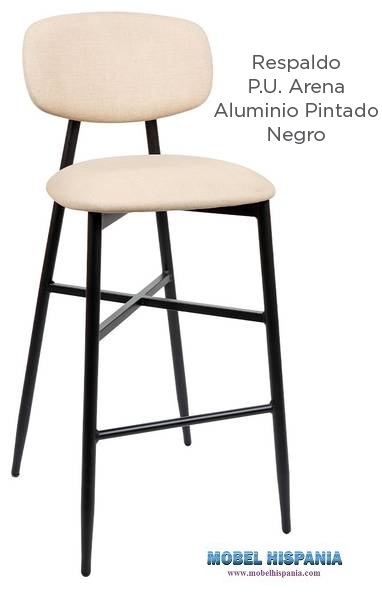 Taburetes de de aluminio en líneas sencillas con asiento y respaldo tapizado