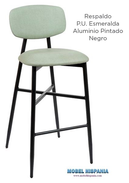 Taburetes altos de aluminio con respaldo y asiento tapizado para cafeterías, restaurantes , hoteles y zonas publicas