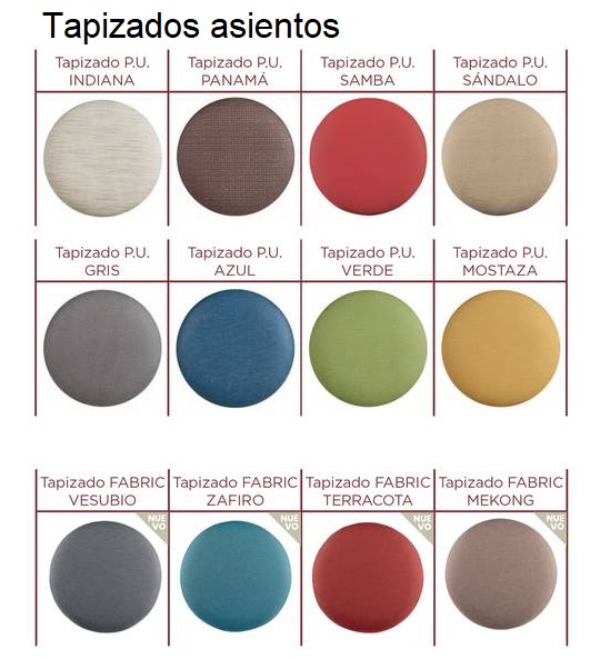 Colores asientos tapizados: Vesubio, Zafiro, Terracota, Mekong,Sandalo,Indiana,Panama, gris, azul, mostazas, azul