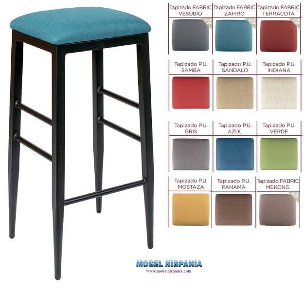 Taburete banqueta polivalente de estructura de acero pintado en epoxi negro.