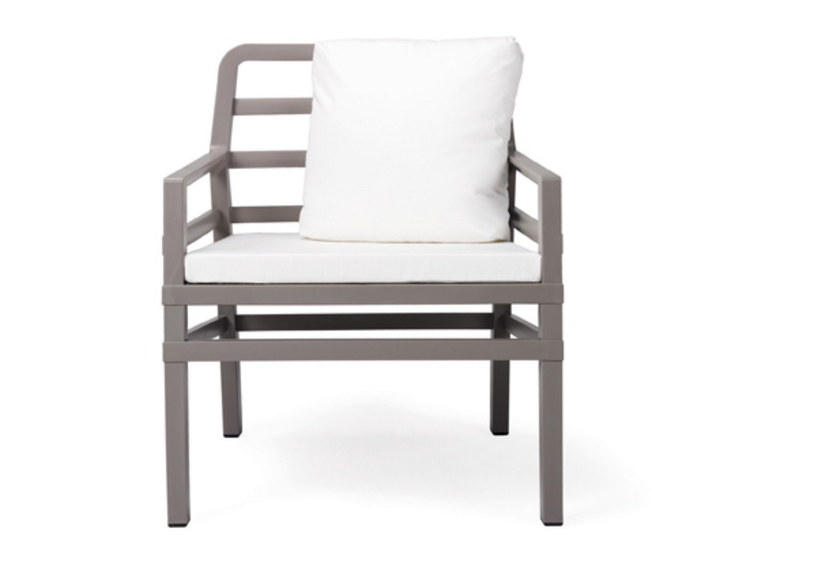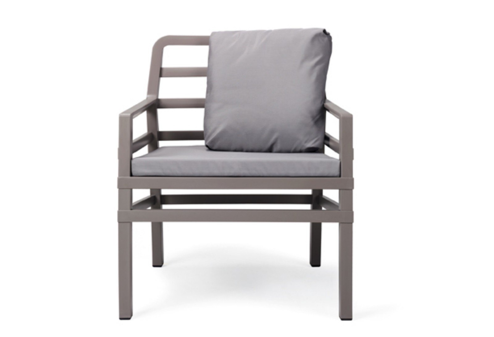 SILLON DE DISEÑO EN POLIPROPILENO COLOR TORTORA CON COJIN
