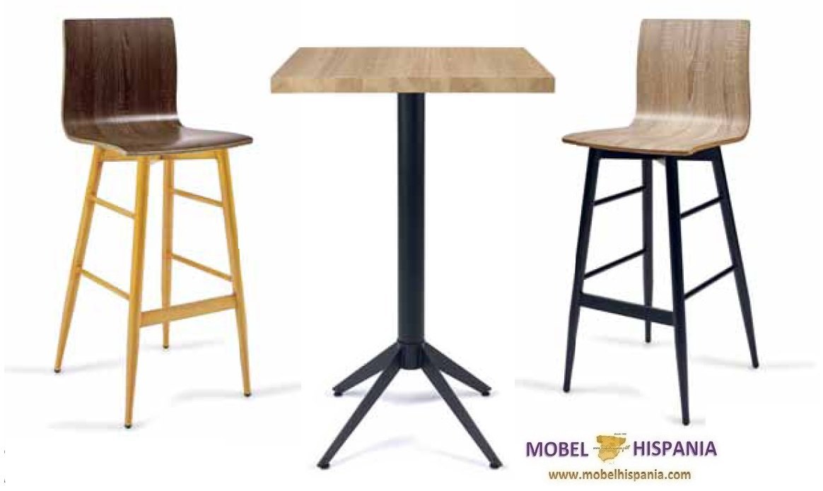 Taburete metalico deco madera asiento madera nogal
