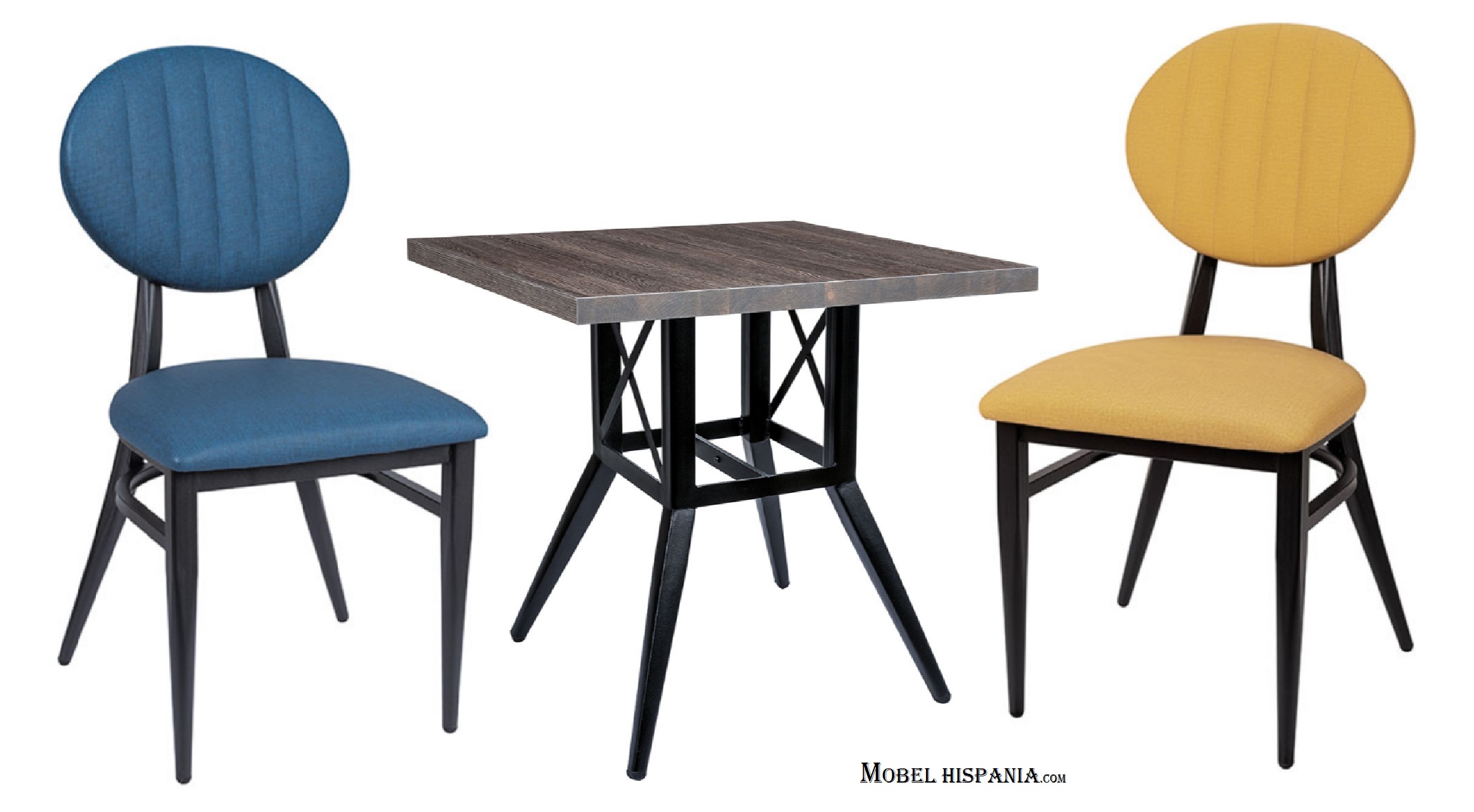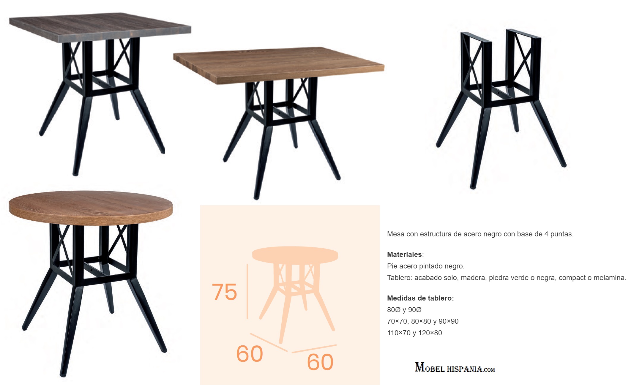 Mesa con estructura de acero negro con base de 4 puntas
