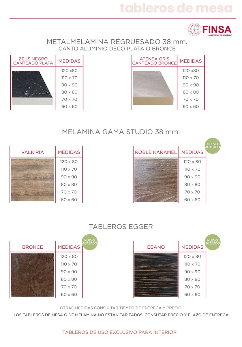 Precio indicado en melamina 70×70