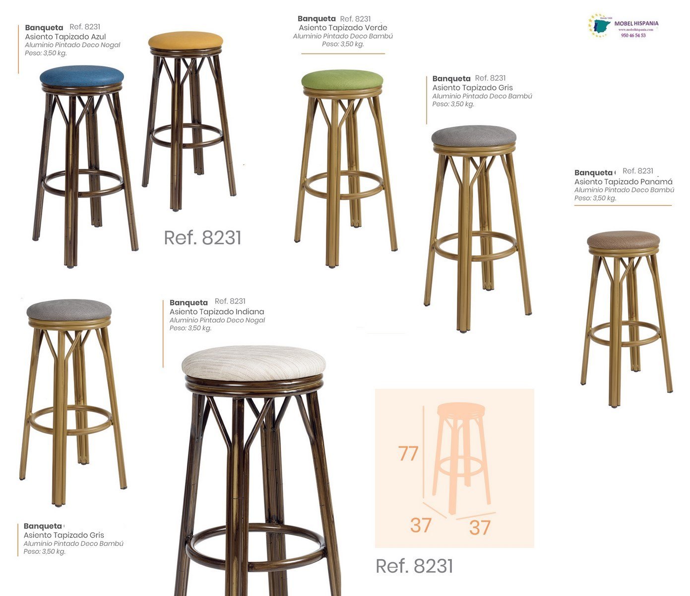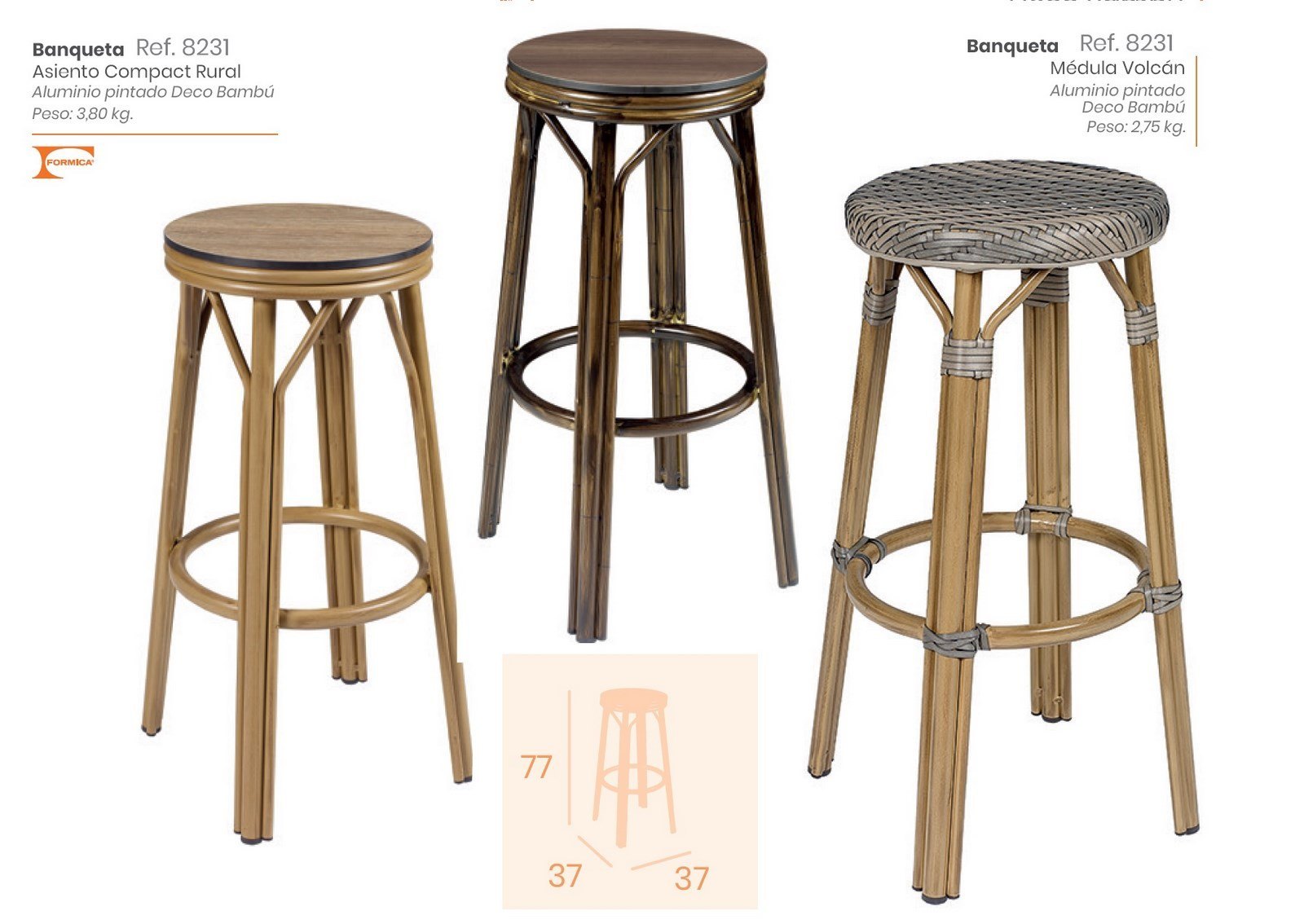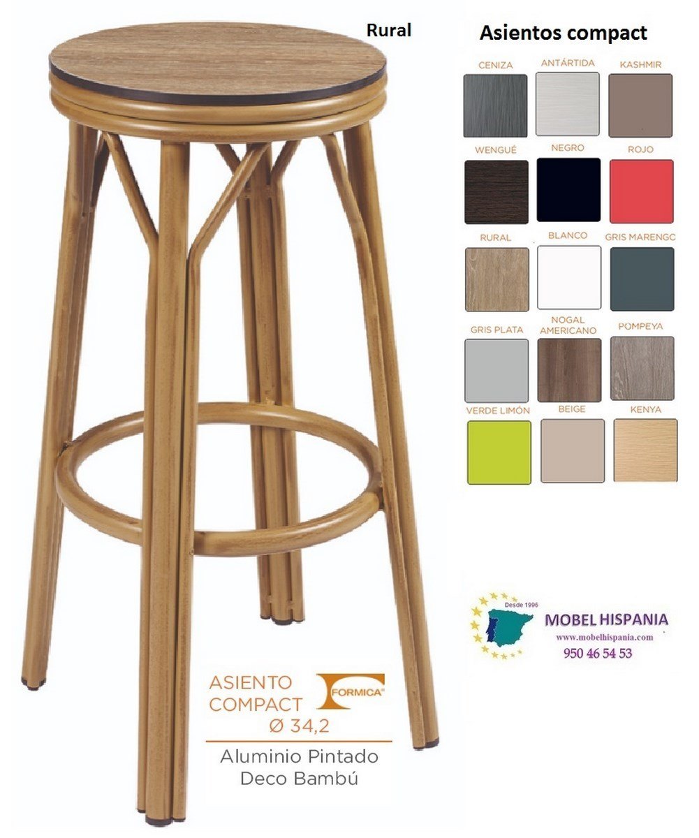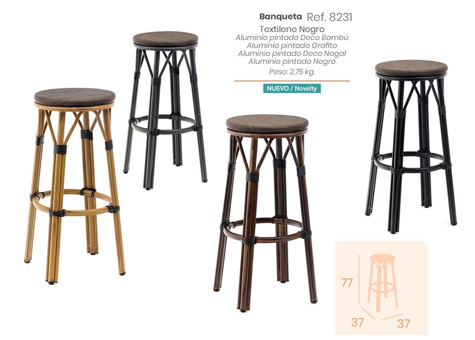 Banqueta de aluminio pintada en deco bambu o deco nogal,negro o grafito.