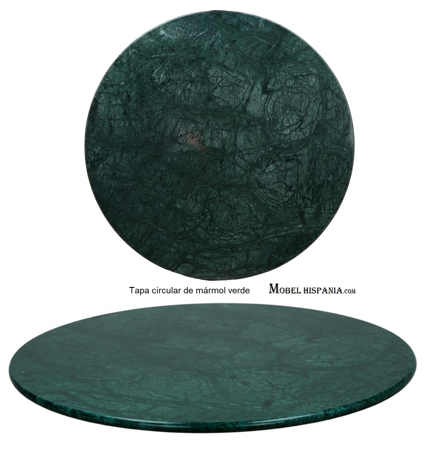 Tapa circular de mármol verde con bordes redondeados mediante fresado.