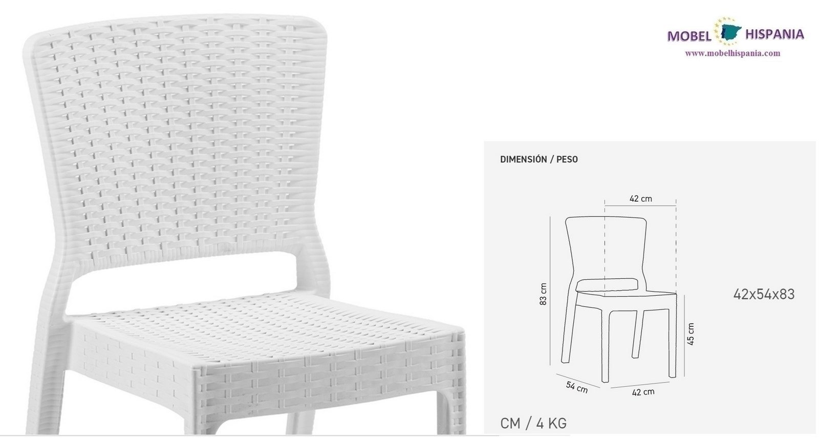 Silla monobloc en resina de polipropileno en rattan sintetica blanca