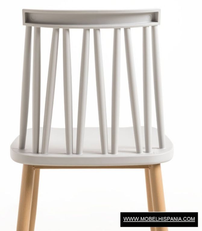 Silla con asiento de polipropileno y patas metálicas imitación madera.