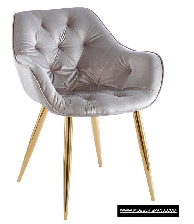 Asiento tapizado en terciopelo amarillo, Rosa, GRis
