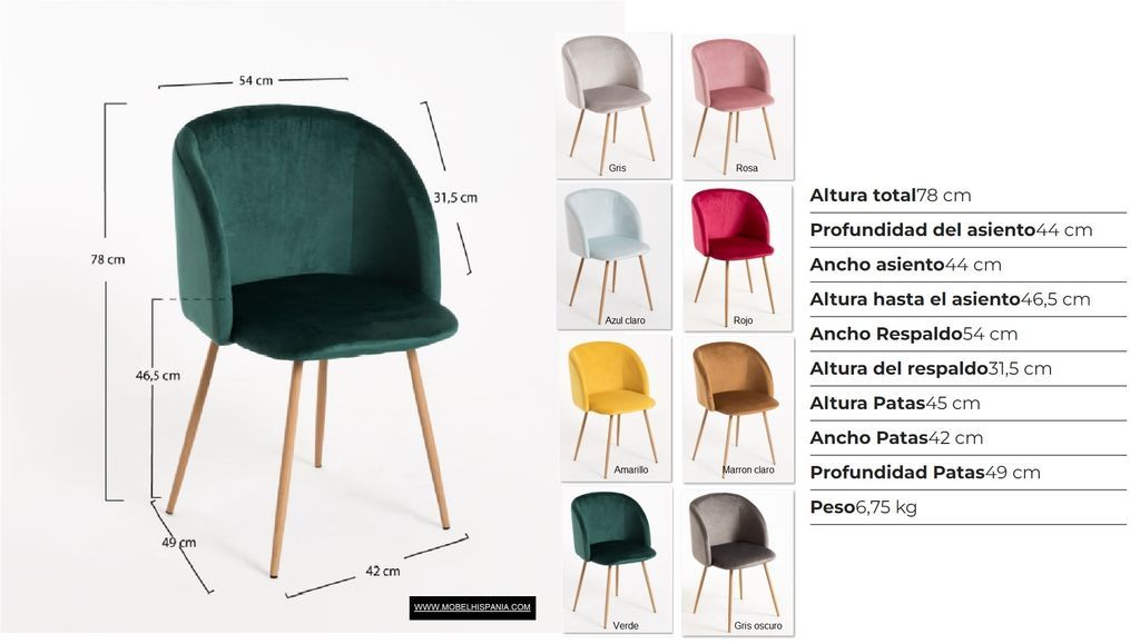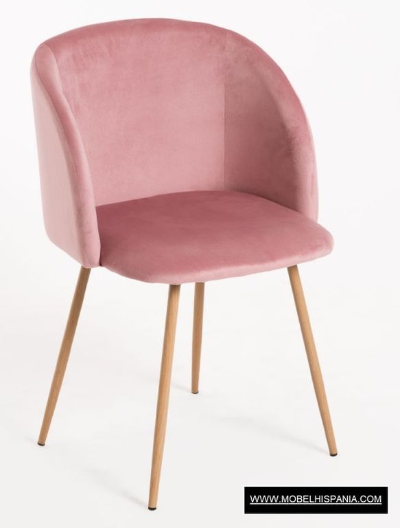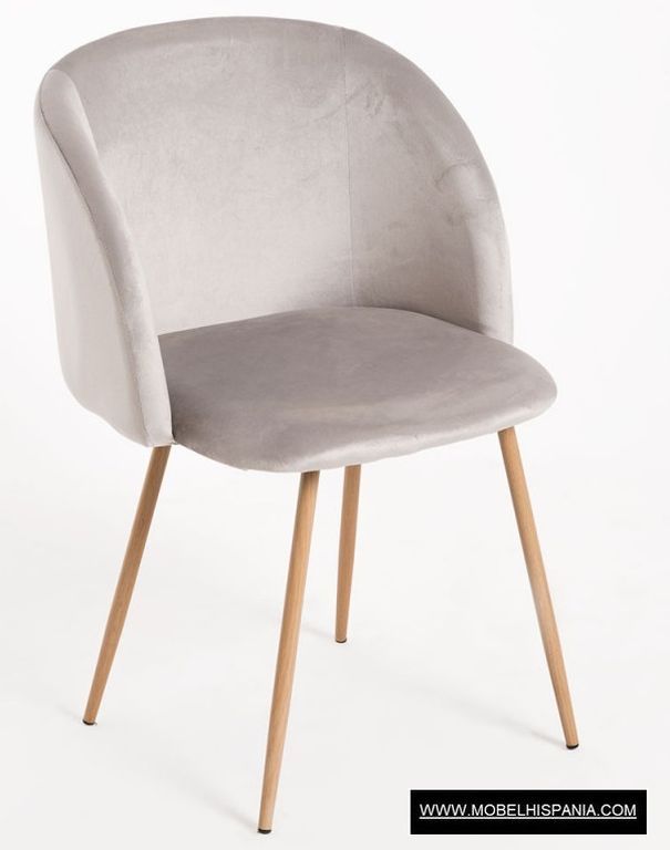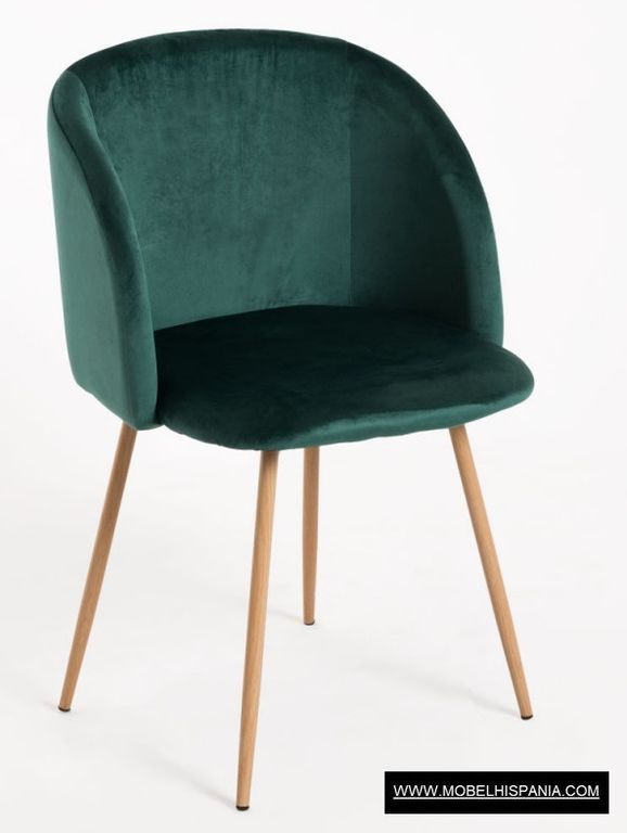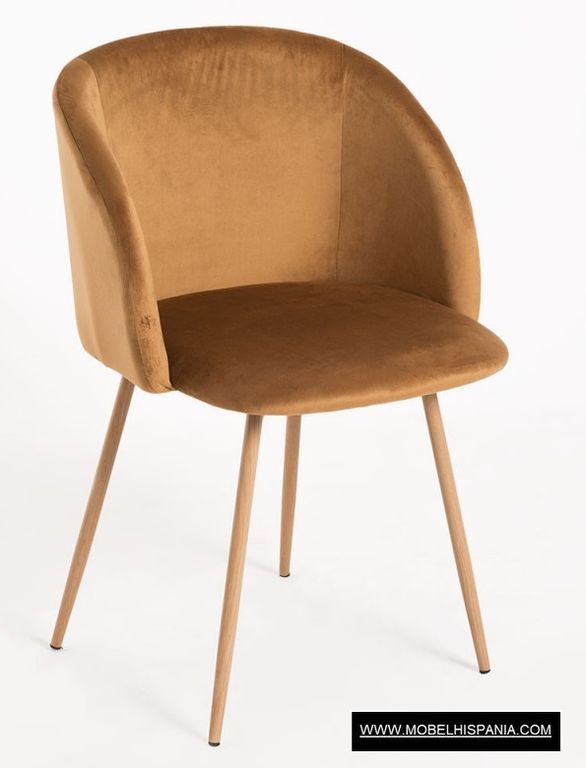 SP.HALEN Silla tapizada terciopelo patas acero imita madera