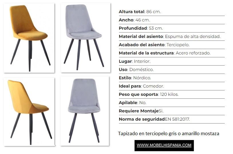 SP.LAURENT Silla terciopelo patas conificadas metalica