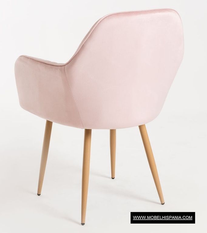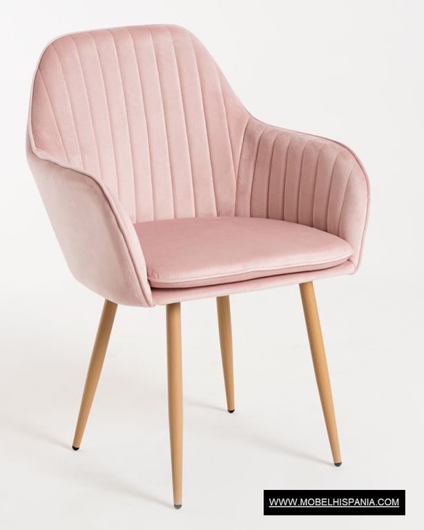 Sillon tapizado en terciopelo con patas metalicas imitacion madera