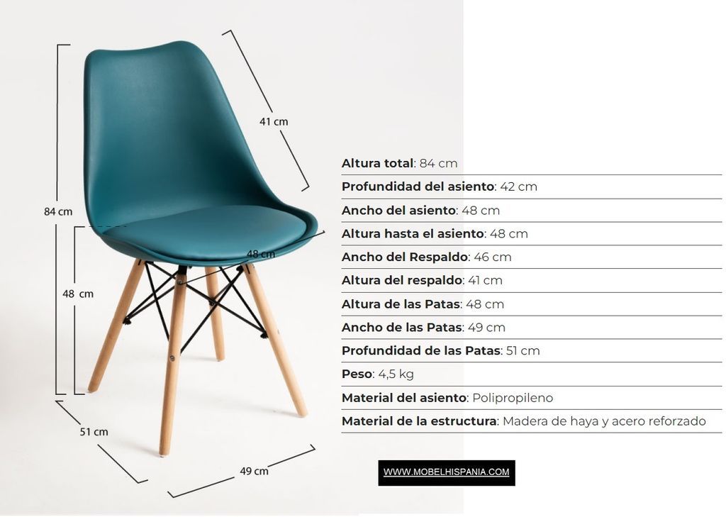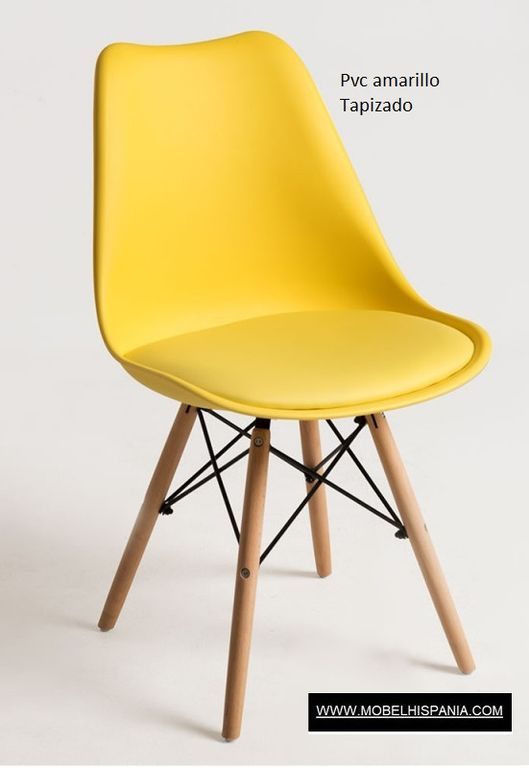 Silla de diseño, madera de haya, carcasa de polipropileno , cojín de asiento en similpiel