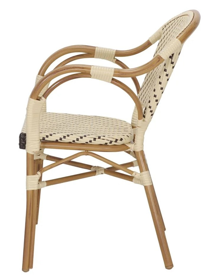 Sillon con brazos de exterior en aluminio bambu y medula rattan apilable
