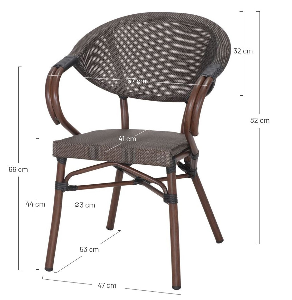 Medidas: 57x57x82 cm | Altura del asiento: 44 cm | Reposabrazos: 66-75 cm