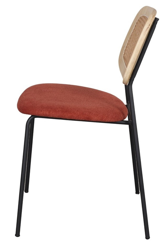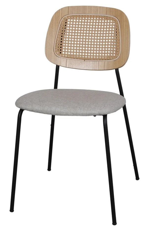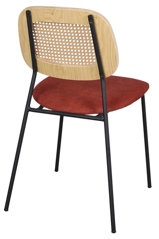 Su respaldo en madera y rejilla le aportan un toque orgánico. Acolchada con espuma, esta silla tapizada es ultra cómoda, lo que la convierte en una silla de comedor perfecta.