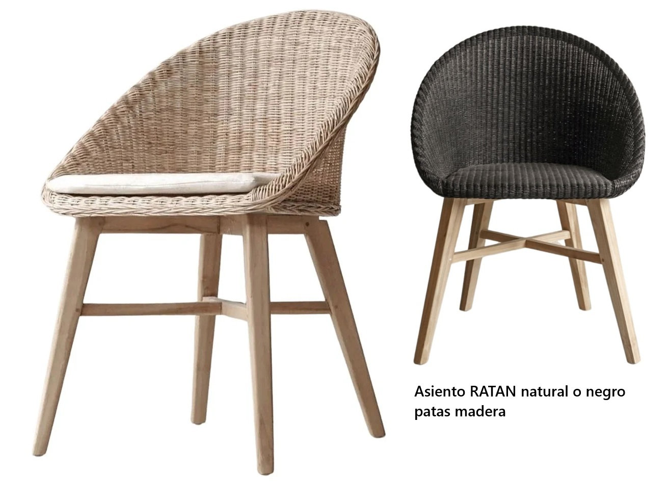 El asiento y el respaldo están confeccionados en ratán sintético trenzado, un material que imita a la perfección la calidez y la textura del ratán natural,