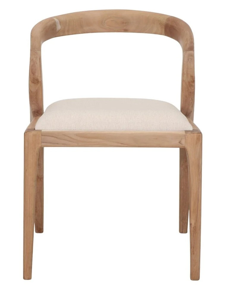 Su estructura está fabricada en madera maciza de teka torneada, una elección que no solo garantiza resistencia y durabilidad, sino que también aporta una textura cálida y sofisticada.