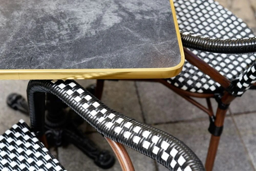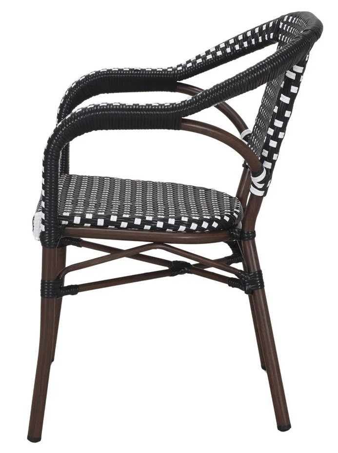 Silla ratán sintético estilo Bistró con reposabrazos.