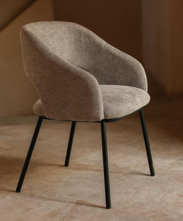 La silla tapizada Kimy destaca por su diseño contemporáneo que combina funcionalidad, estética y confort.