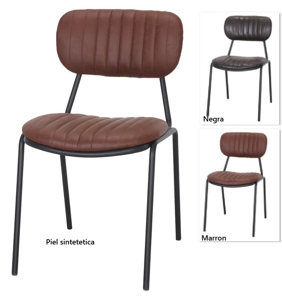Silla de símil piel marron o negro , de estilo Industrial – Vintage.