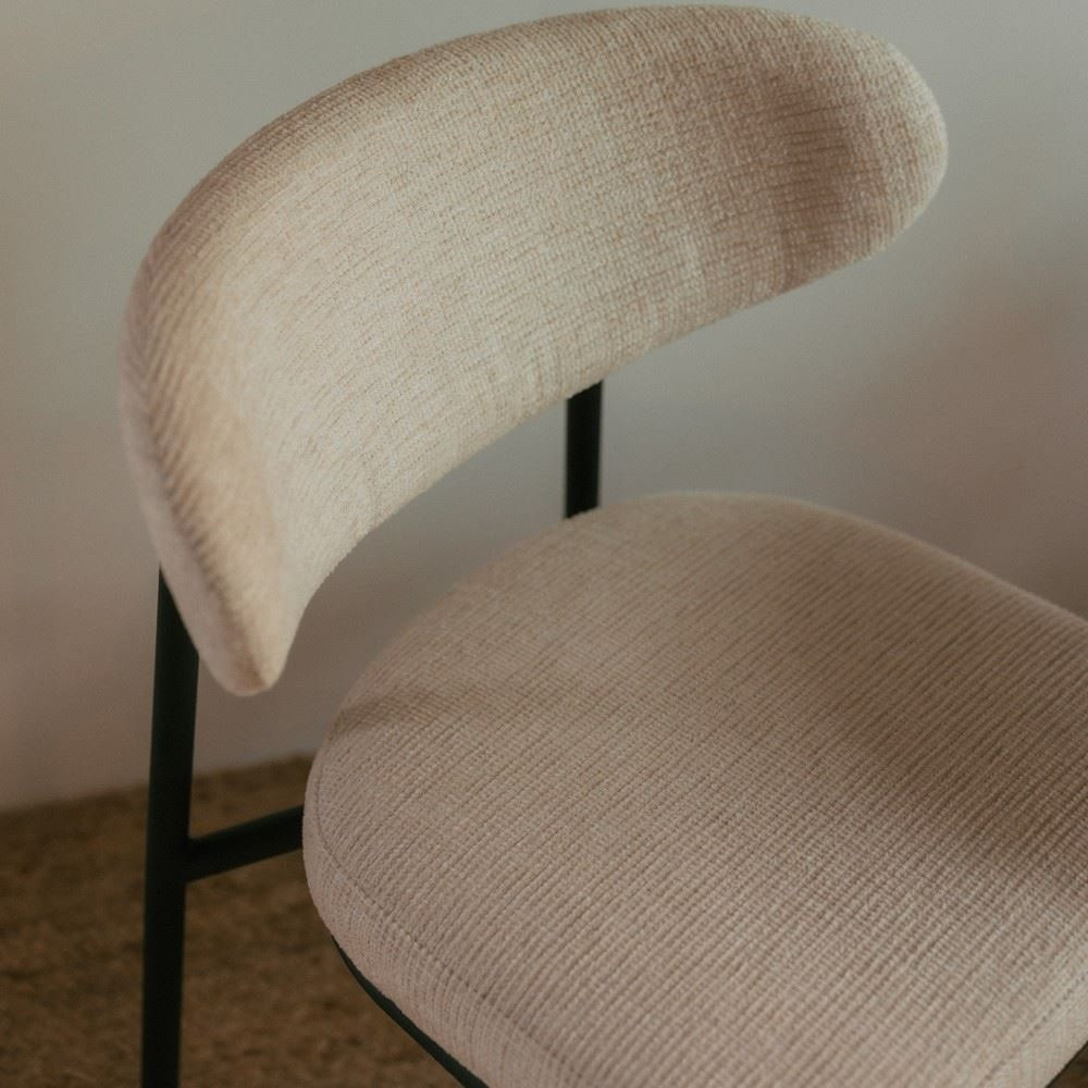 La elección del tejido no solo aporta un toque de calidez, sino que también añade una textura agradable al tacto, complementando el diseño minimalista de la silla.